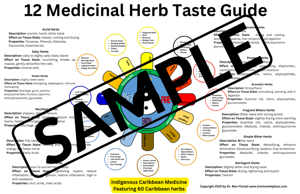 2. Taste Description: The chart includes a description and breakdown of each of the 12 medicinal herb taste as well as what the taste means medicinally.